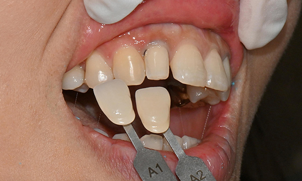 - Case example: In this patient’s case, the space for peg-shaped tooth treatment was insufficient on one side and excessive on the other. Additionally, the upper and lower dental midlines did not align. If peg-shaped tooth treatment is desired, a simple orthodontic procedure is required to redistribute the space around the teeth.