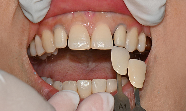 - Result: The resin veneer was applied without reducing the tooth structure, using a shade similar to the natural teeth. The restoration blended naturally with the adjacent teeth.