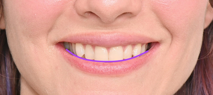Her smile already had a beautiful smile arc—the curve connecting her upper front teeth followed the contour of her lower lip perfectly. She was satisfied with her overall appearance, but wanted to correct the slight size difference and minor misalignment between her two front teeth to make them look more even.