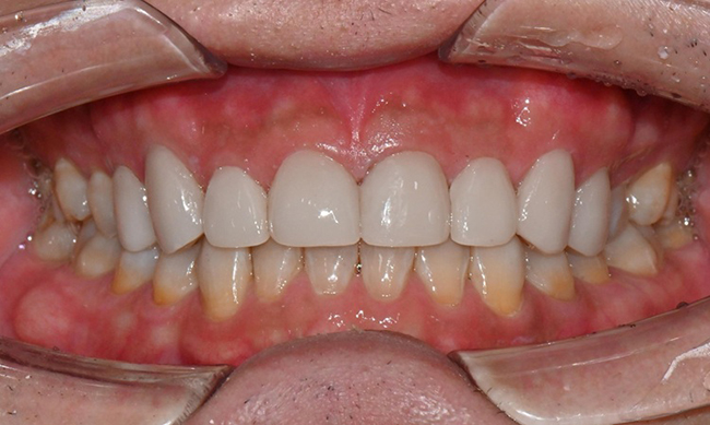 The patient understood the importance of occlusal stability and long-term prognosis and agreed with the treatment plan focusing solely on the upper anterior teeth at this stage.